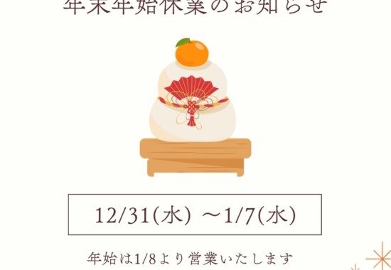 年末年始休業のお知らせ